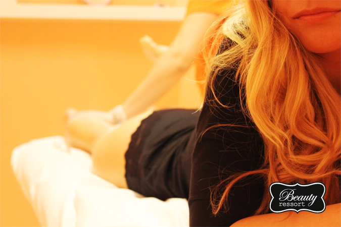 Die Behandlung fand in einem gemütlichen, kleinen Raum statt. Und bevor ich weiter nachdenken konnte, ging es auch schon los. Während die Paste erwärmt wurde, entölte Genia meine Beine mit einem speziellen Tuch und trug danach ein Talkumpuder auf. Nachdem meine Beine vorbereitet waren, wurde die körperwarme Paste entgegen der Wuchsrichtung meiner Haare aufgetragen.